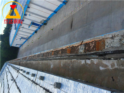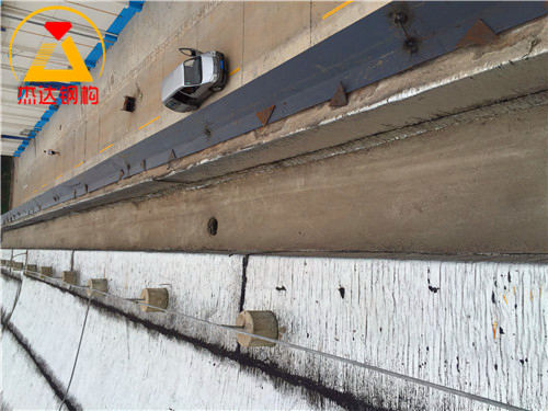 圖中展示的托板,是專為拱形屋頂結(jié)構(gòu)定制的連接部件,通過精準焊接固定在原有儲備庫的預埋件上,使得屋面與主體結(jié)構(gòu)形成一體化連接,提升抗風、防滲等性能。