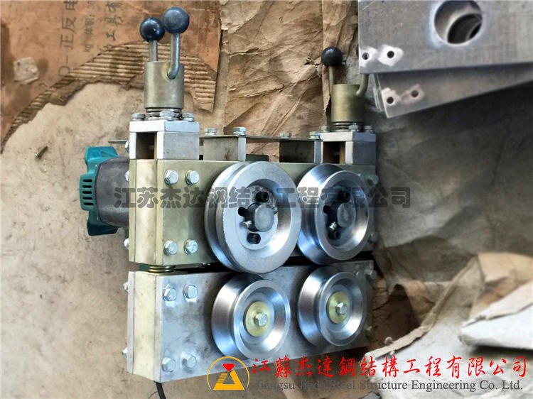 將機器放至兩板交合處,并調整兩邊支腳高度,注意滾輪是否有在所要壓的位置。
