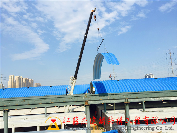 以下內(nèi)容介紹了江蘇杰達(dá)鋼結(jié)構(gòu)工程有限公司于2015年在山東濰坊完成的一項連跨拱形屋頂工程,展示了該工程的結(jié)構(gòu)特點和施工效果,供相關(guān)領(lǐng)域參考。