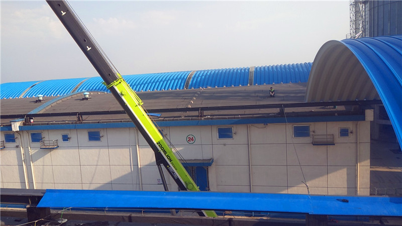 施工過程中,杰達鋼構(gòu)使用第五號拱形屋頂壓型設(shè)備連夜趕赴施工現(xiàn)場,確保施工進度。