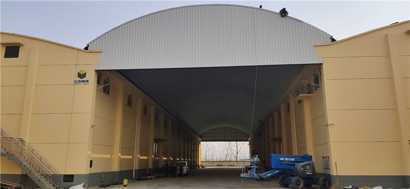 該項(xiàng)目采用的無梁拱形屋頂結(jié)構(gòu),外觀呈現(xiàn)海藍(lán)色,整體設(shè)計(jì)緊湊,功能齊備。施工中我們?cè)趦蓚?cè)安裝了山墻封閉結(jié)構(gòu),進(jìn)一步提升了整體的穩(wěn)定性和防護(hù)性能。
