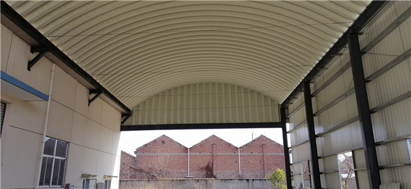 本項(xiàng)目是為如皋丁堰糧食儲(chǔ)備庫(kù)建設(shè)的倉(cāng)間罩棚工程,屋頂采用寶鋼彩涂卷,材質(zhì)厚度為1.0mm,顏色為乳白色,具備良好的耐腐蝕性能與穩(wěn)定性。